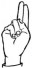 На ћирилици написано РАДНА ШКОДРИЋ састоји се из 12 слова [?]. Исписано ћириличном једноручном азбуком за глувонеме: